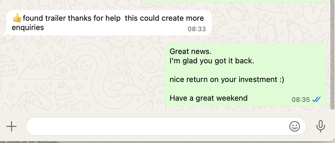 Thanks to the simplicity and ease of use of our tracking app, the customer was able to navigate directly to the trailer’s exact location. The recovery was completed successfully, minimizing disruption and preventing further loss.